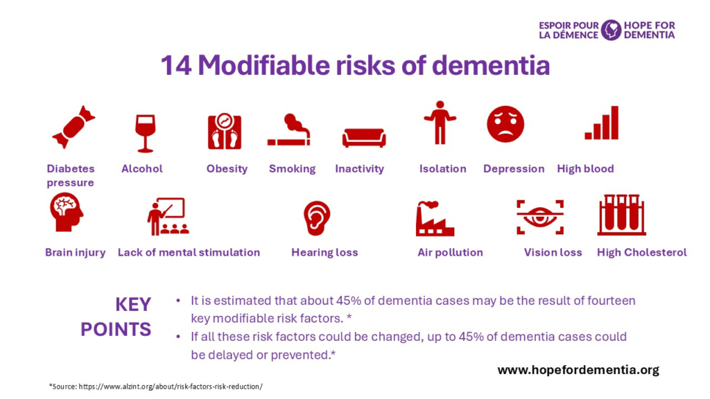 - Researchers have identified 14 risk factors, which if modified, could potentially reduce or delay the number of new diagnoses of dementia by 45%.